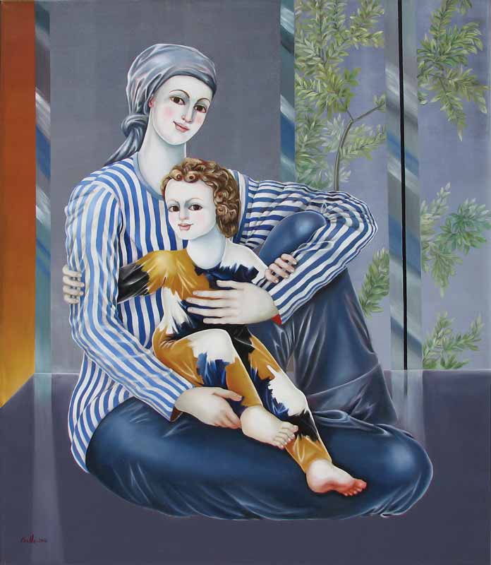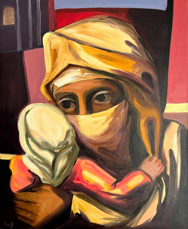 La serie “Madres” representa el vínculo sagrado y universal de la maternidad. A lo largo de su trayectoria fue un tema recurrente que siempre fue abordado según el momento y estilo. Coello captura en estas obras la ternura y la fortaleza de la figura materna, utilizando colores cálidos y composiciones que sugieren protección y amor. Las imágenes se entrelazan con símbolos ancestrales, evocando la continuidad y la vida, y transmiten un profundo respeto por el papel femenino como sostén del linaje cultural y afectivo.