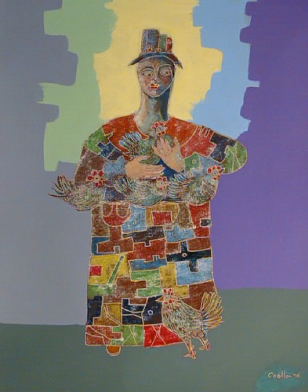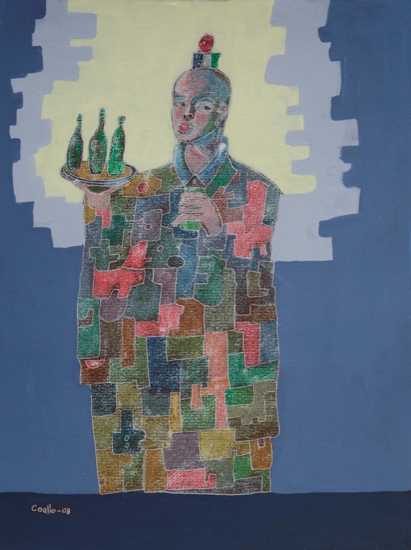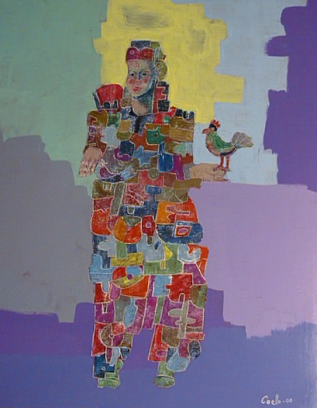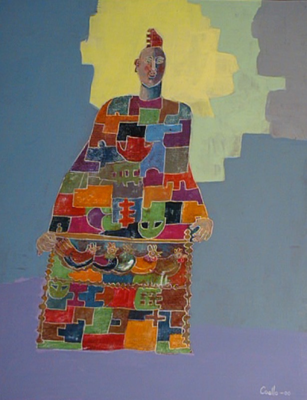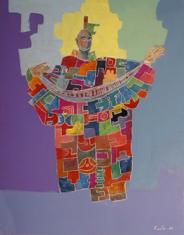 En la serie “Magos”, Coello despliega una imaginería mística donde los personajes son portadores de saberes antiguos y poderes ocultos. Las composiciones combinan formas geométricas y figurativas, generando un lenguaje visual cargado de simbolismo. A través de colores vibrantes y contrastes dramáticos, estas obras evocan el misterio, la transformación y la magia que habitan en el inconsciente colectivo.